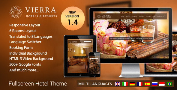 Vierra是WordPress的主题酒店。 Vierra帮助你在任何时间打造美丽的酒店网站。这个主题是非常容易使用,即使是初学者。配备了定制后的房间“和预订表格。这个主题也是高度定制的,你可以改变网站看起来只是点击。
