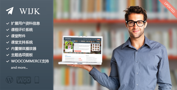 WIJK WordPress主题是一个在线教学/课程出售主题,特点:响应(自适应)布局,主题选项面板,WooCommerce 集成,4个自定义文章类型(课程、培训、评价、幻灯片),用户注册登录以及个人资料前端系列页面,2个幻灯片类型,2个自定义小工具,自定义主题选项面板,简码编辑器,无限侧边栏等。持更新升级!
