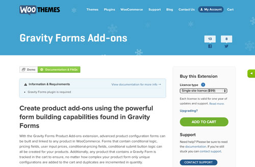 配合重力形式的产品附加组件扩展,先进的产品配置形式可以建成并链接到WooCommerce任何产品。都能为您的产品创建包含条件逻辑形式,定价领域,用户输入的价格,有条件的定价领域,有条件的提交按钮的逻辑。此外,包含重力形式的任何产品进行跟踪的车,以保证,无论多么复杂的产品只是形式独特的配置添加到购物车和重复的数量递增。