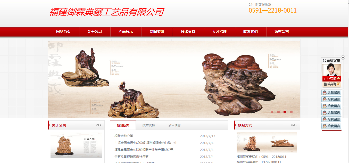PrevNext御霖典藏(北京)工艺品有限公司主要从事根雕艺术制作限责任公司。御霖典藏(北京)工艺品有限公司自成立以来,多次被评为艺术品“诚信身份证”试点单位。改企业公司企业现已改版。公司13年5月之企业网站建设项目。 2014年3月18日响应式企业网站