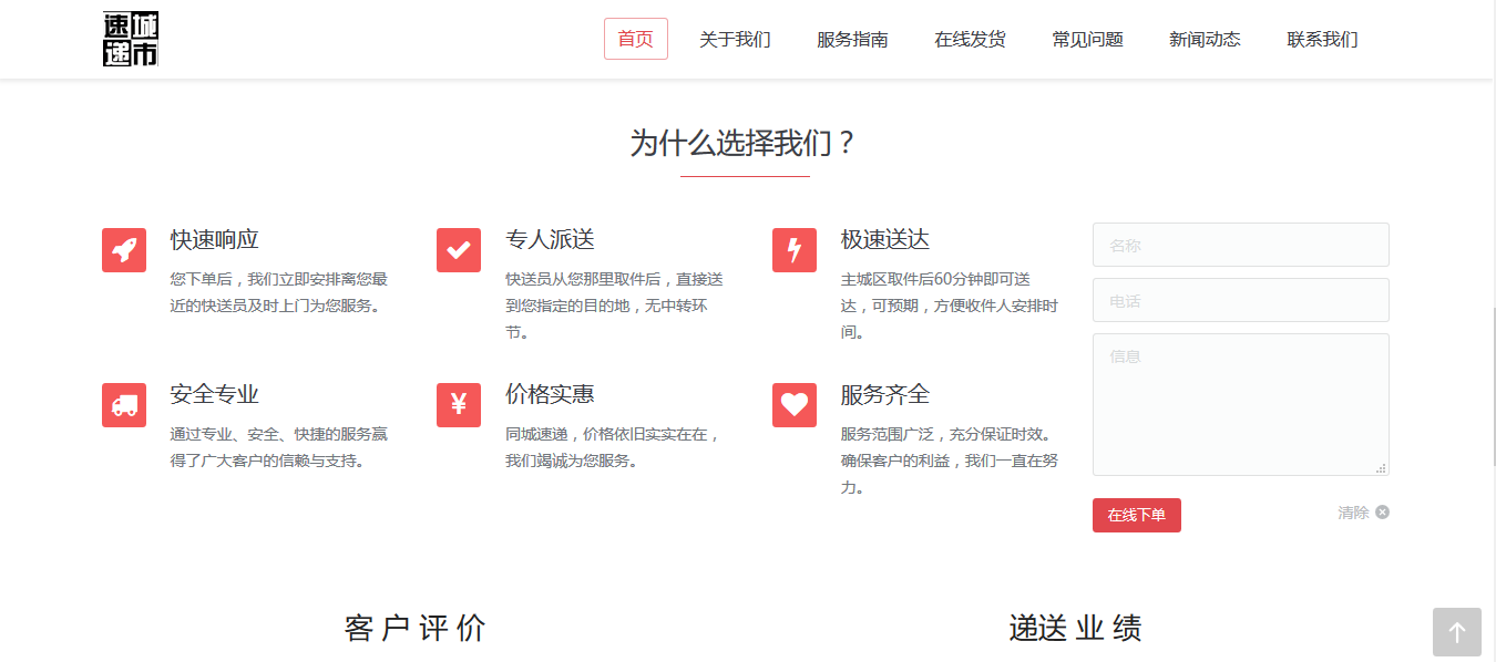 PrevNext城市速递城市速递立足于福州,提供高质量的同城快递服务,30分钟取货,60分钟送达,专注于服务质量的提升,不断满足市场的需求,打造福州同城快递第一品牌。 2016年3月11日响应式企业网站