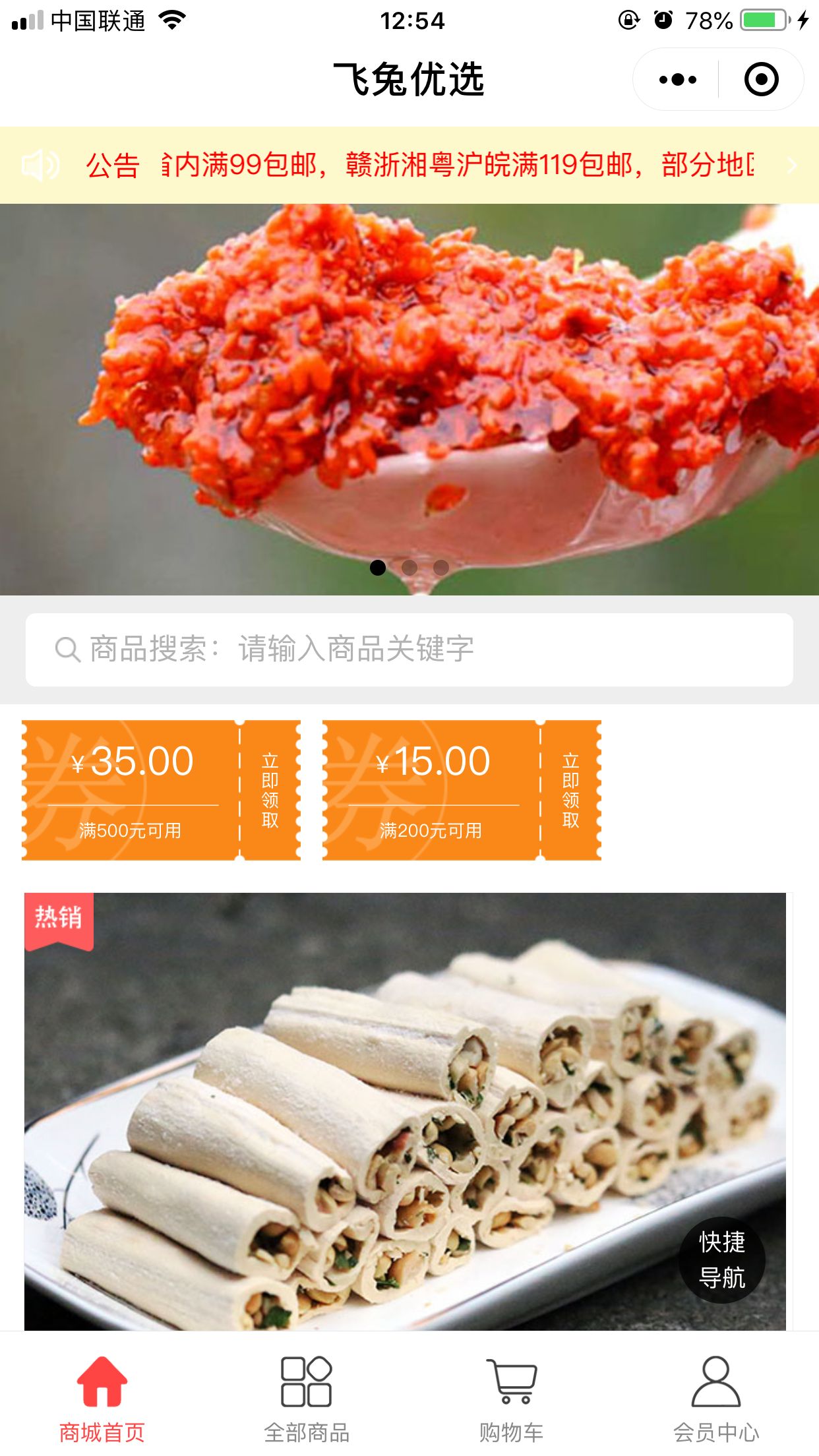 上一个下一个飞兔优选飞兔优选是在国家提出的供给侧改革、精准扶贫、大众创业,万众创新的发展号召下,顺应国家一带一路的经济大背景下。一款及人脉、物质、金融共享服务平台。是共享时代下的数字经济与分享经济带来的全新消费增值、 资源服务平台。飞兔优选是一家专门提供各种特产礼品,特产小吃,特产资讯的网站,一直为广大网友精挑细选最质优价廉的各款地方特产,致力于打造全国最齐全的土特产商城. 微信扫一扫体验吧! 2019年4月24日微信小程序开发 新浪微博分享到新浪微博腾讯微博分享到腾讯微博人人网分享到人人网QQ空间分享到QQ空间开心网分享到开心网微信分享到微信