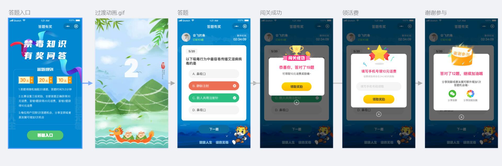 PrevNext禁毒知识竞答,赢取礼品! 奖项设置:一等奖:,30元话费150名(答对19题以上) 二等奖:20元话费200名(答对18题) 三等奖:10元话费200名(答对17题) 参与奖:美团单车包月骑车码800名(答对10题以上,17题以下) 请确认您输入的手机号码无误,奖品将在1到3个工作日充值到您的账户,美团单车兑换码将以短信形式发送至您手机号上 2020年6月25日微信小程序开发