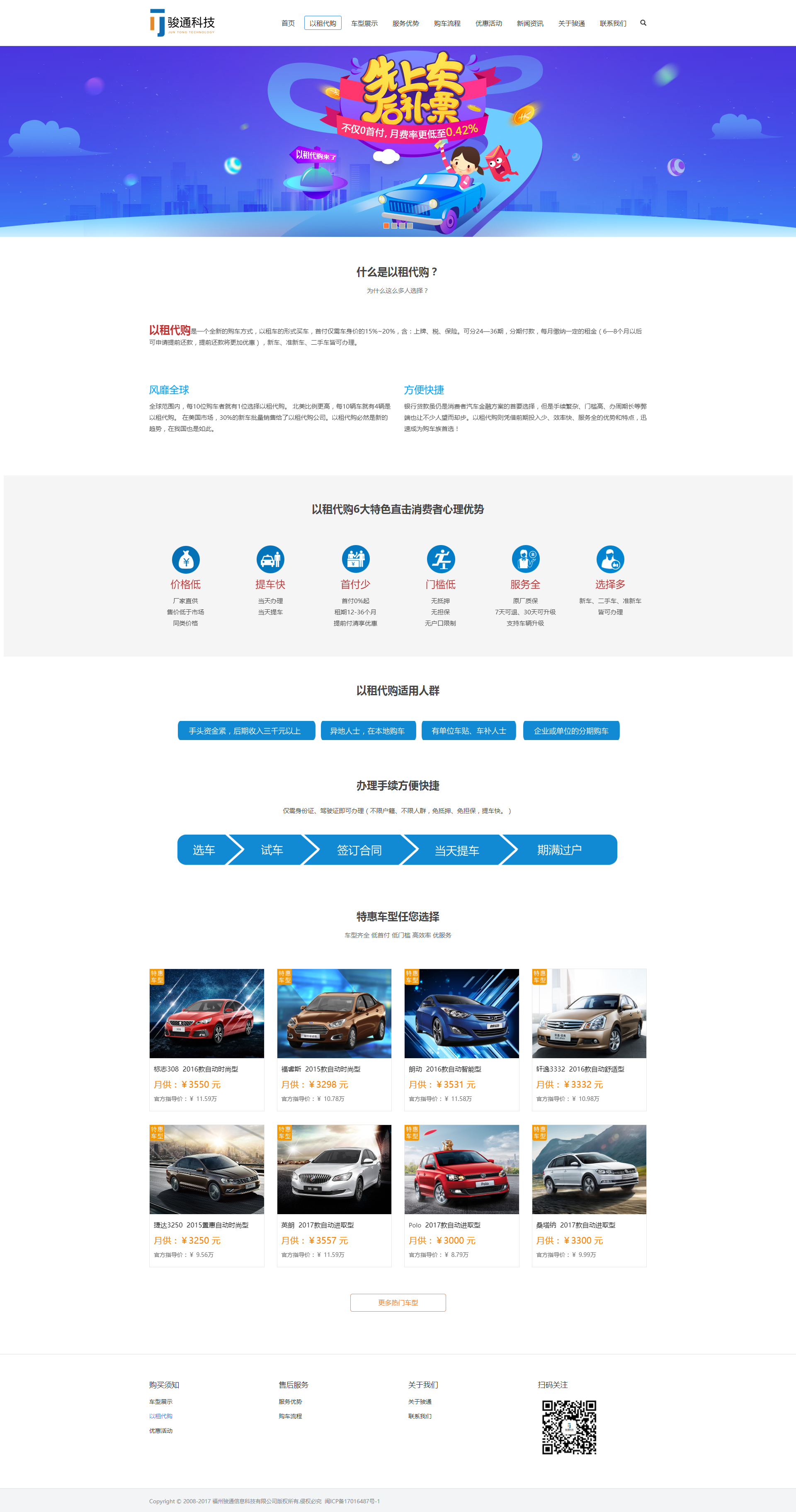 上一个下一个福州骏通信息科技有限公司福州骏通信息科技有限公司(以下简称骏通科技)是一家经国家商务部批准成立的专注于从事汽车销售、汽车资源、汽车金融、汽车以租代购等多功能于一体的现代化专业化规范化汽车销售服务公司,是集浓厚的汽车文化底蕴、卓越的合作团队、标准化的管理体制和强大的经济实力于一身的汽车销售服务中心。 2017年7月31日响应式企业网站微信业务系统微信小程序开发 新浪微博分享到新浪微博腾讯微博分享到腾讯微博人人网分享到人人网QQ空间分享到QQ空间开心网分享到开心网微信分享到微信