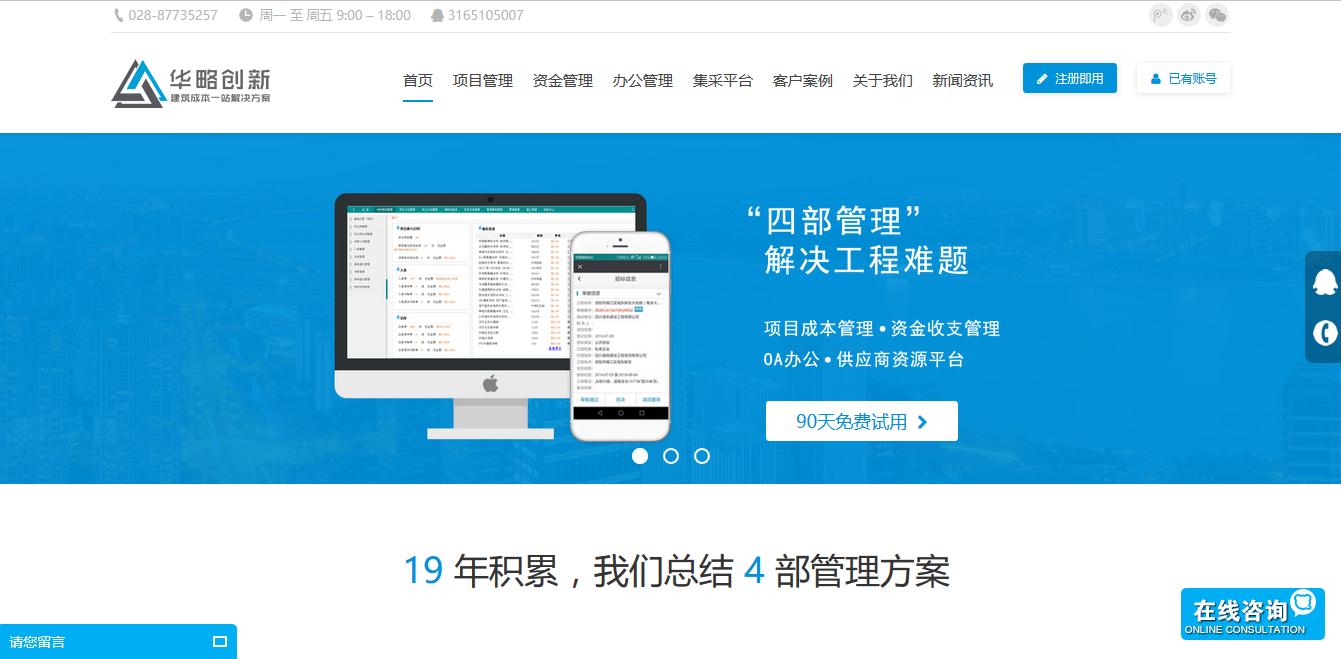 PrevNext成都华略科技有限公司成都华略科技有限公司是一家以施工企业信息化管理工具和供应链管理系统等技术驱动的创新科技公司。服务于国内中小型施工企业,为建筑施工企业和开发企业打造工程全生命周期的信息化解决方案,拥有【项目成本管理系统】【资金池管理系统】【供应链管理系统】【手机办公管理系统】等系统。 2016年9月5日响应式企业网站