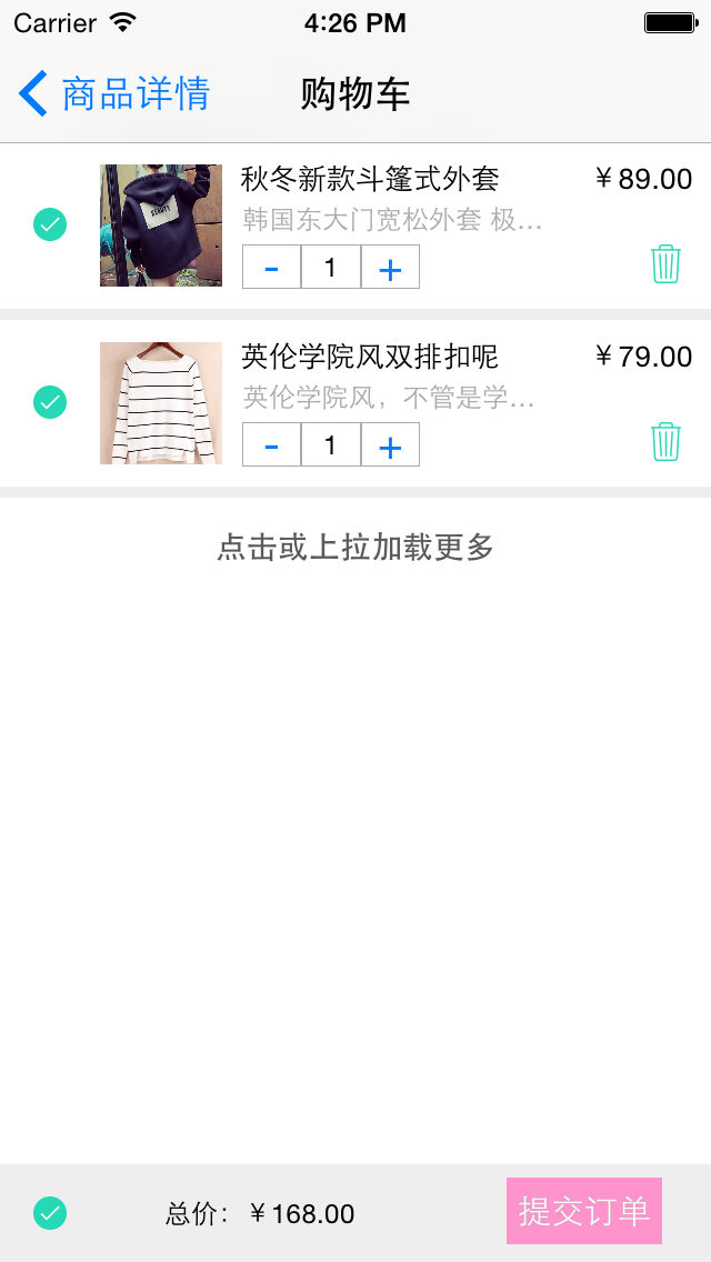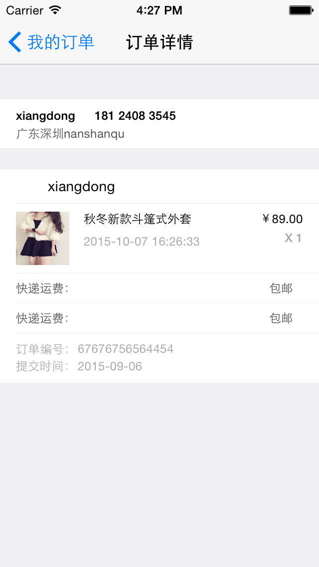 上一个下一个链接一、项目描述 秒送是一款服装销售app,客户在app上下订单后不需要付款,物流将货物送到客户手上后,客户试了满意后可以直接货到付款,不满意的货物可以免费退货。 秒送主要提供的功能: 浏览商品 免费试用商品 对商品进行评价 二、项目展示 图1 登陆页面图 图2 设置图 图3 首页图 图4 商品详情图 图5 商品评论图 图6 购物车图 图7 订单详情图 图8 售后服务图 2017年6月13日APP定制与开发 新浪微博分享到新浪微博腾讯微博分享到腾讯微博人人网分享到人人网QQ空间分享到QQ空间开心网分享到开心网微信分享到微信