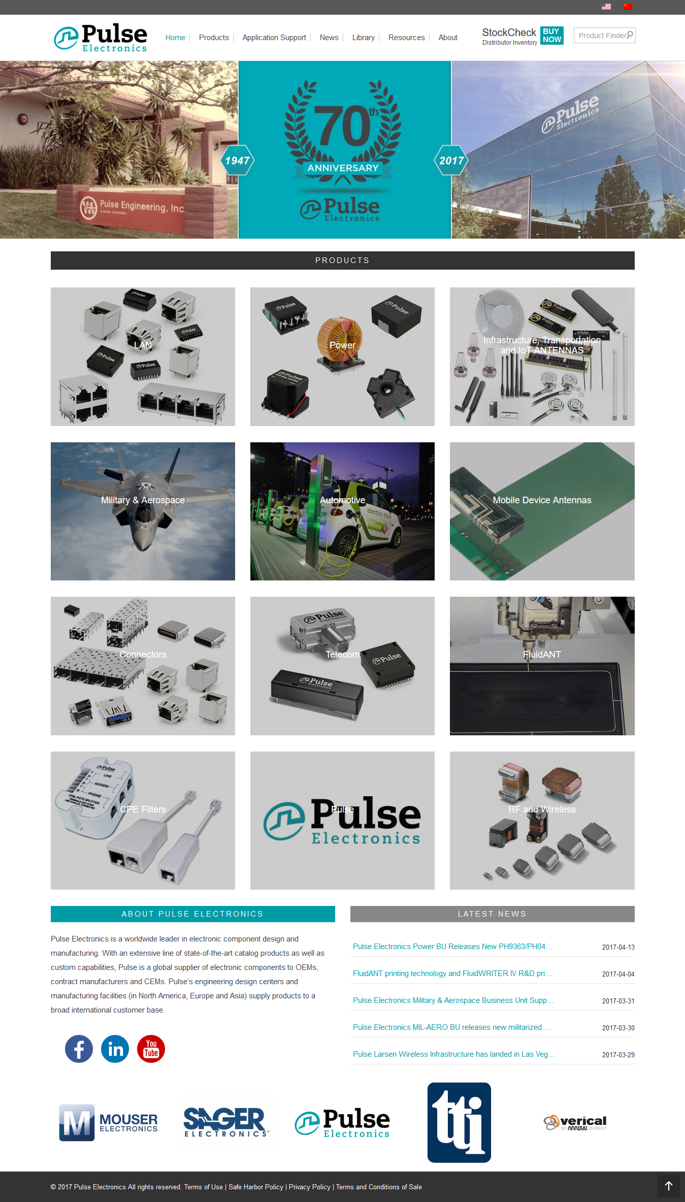 四十年以来一向是数据通讯和电源供应技术方面的全球领导企业,提供最好和最完整的磁性元件解决方案。Pulse Electronics是全球