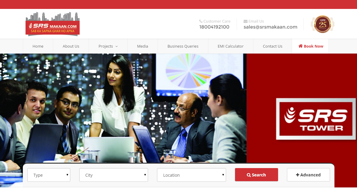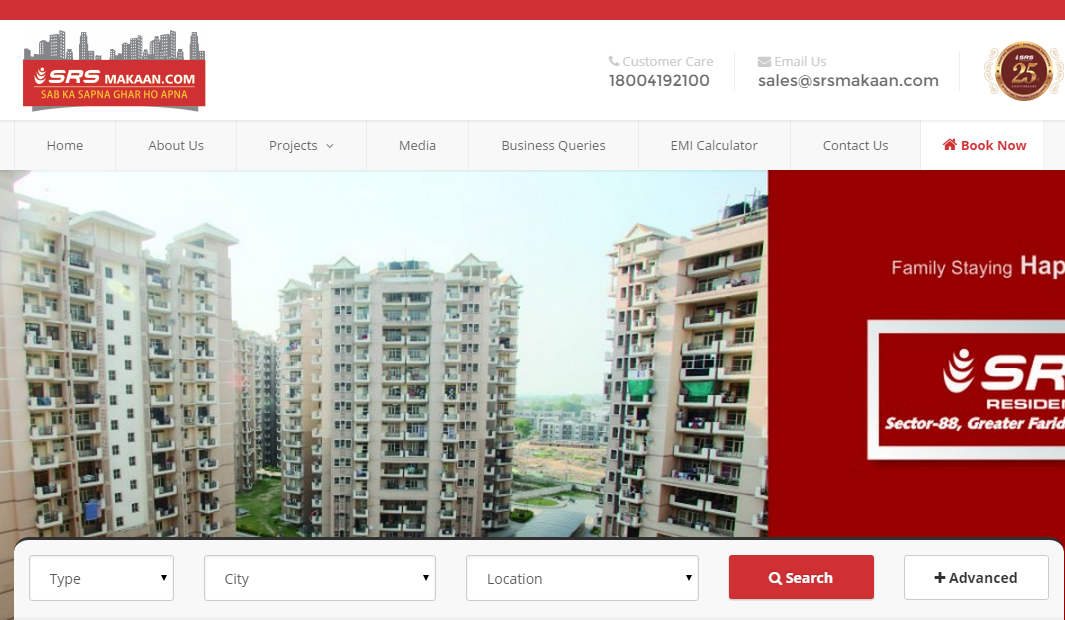 RSMakaan.Com is an endeavor of the SRS Group, a multi-domain business conglomerate with a turnover in excess of Rs 5000 crores. It is active in several verticals that include Real Estate, Jewellery, Cinemas, Retail, F&B, Healthcare, Education and Financial Services. Three of the SRS Group companies are listed on the BSE and/or NSE. The Real Estate projects of the SRS Group include residencies, independent floor, group housing, townships, plotted colonies, farm houses, corporate tower, IT park, shopping arcade etc. These projects are spread across geographies such as Faridabad, Karjat (Mumbai), Palwal, Ballabgarh, Panchkula, Rewari, Kurukshetra etc.
