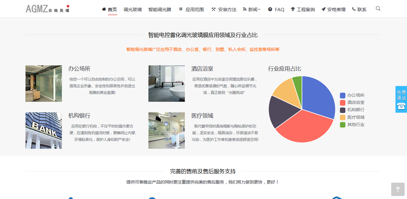 PrevNext调光玻璃_雾化玻璃_调光膜_首选pdlc液晶智能电控调光投影玻璃膜厂家上海安格美增节能环保材料有限公司专业致力于科技创新材料PDLC智能液晶调光膜,调光玻璃,雾化玻璃的研发生产及销售业务,优良的 品质与价格让产品广泛应用于办公室调光玻璃隔断,银行,酒店,家庭及别墅等,打造高档的私密空间!我们将最优惠的价格供应智能调光玻 璃,通电雾化玻璃,液晶调光膜,让利广大客户促进市场行业发展! 2016年7月6日响应式企业网站