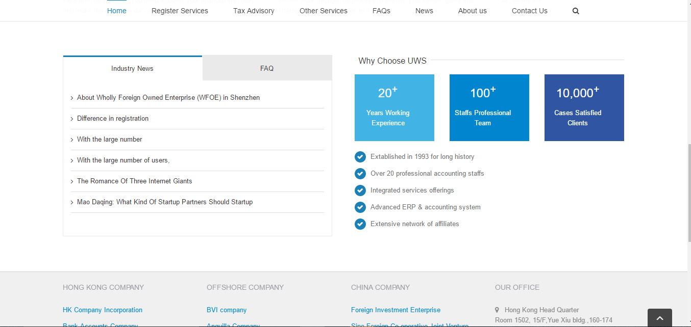 Uni-World Services was established in 1993, as a comprehensive and professional business solution provider. With Hong Kong head office as the hub of expansion, branch offices in Shenzhen, Shanghai, Tianjin, Nanjing and Beijing were created. The strategic presence of our offices