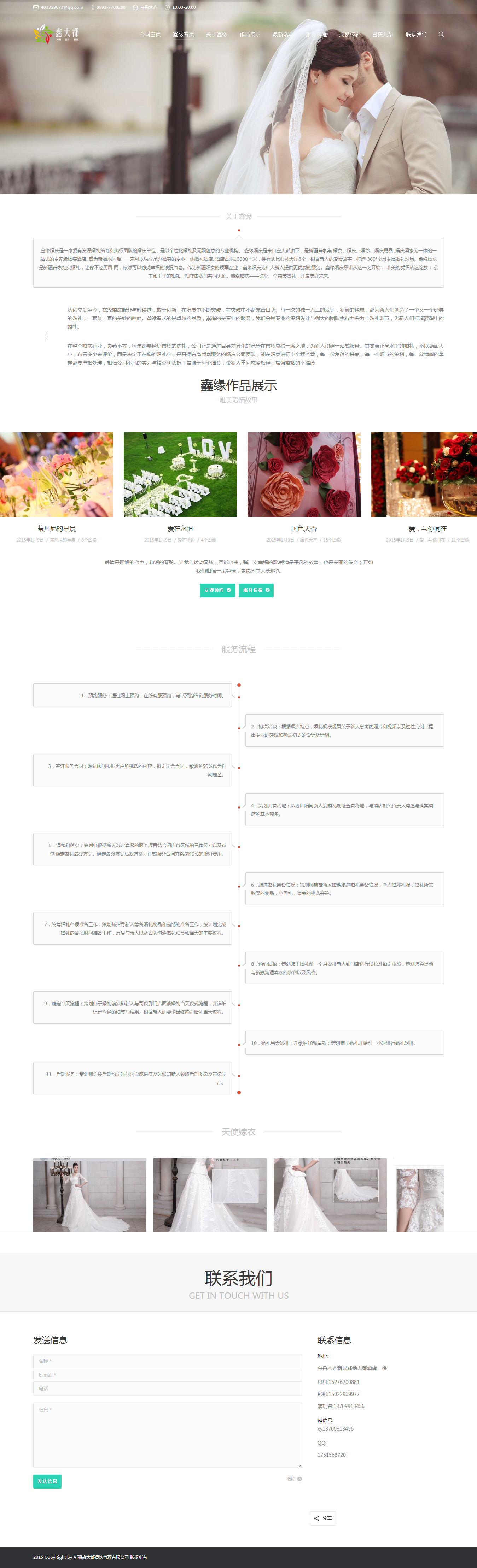鑫缘婚庆是一家拥有资深婚礼策划和执行团队的婚庆单位,是以个性化婚礼及无限创意的专业机构。 鑫缘婚庆是来自鑫大都旗下,是新疆首家集 婚宴、婚庆、婚纱、婚庆用品 ,婚庆酒水为一体的一站式的专家级婚宴酒店, 成为新疆地区唯一一家可以独立承办婚宴的专业一体婚礼酒店. 酒店占地10000平米,拥有实景典礼大厅8个,根据新人的爱情故事,打造 360°全景专属婚礼现场。鑫缘婚庆是新疆首家纪实婚礼,让你不经历风 雨,依然可以感受幸福的浪漫气息。作为新疆婚宴的领军企业,鑫缘婚庆为广大新人提供更优质的服务。鑫缘婚庆承诺从这一刻开始: 唯美的爱情从这绽放! 公主和王子的相知、相守由我们共同见证。鑫缘婚庆——许您一个完美婚礼,开启美好未来.