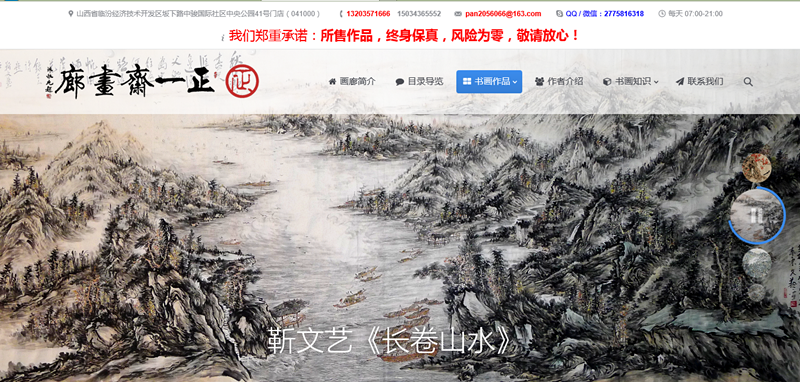 正一斋画廊 郑重承诺:“所售作品,终身保真,风险为零,敬请放心!”大多已故书画名家作品均经权威机构或资深专家鉴定,并有鉴定证书;当代书画名家作品均来自书画家本人或经本人鉴定。凡在本画廊购买的作品,如经作者本人或二位以上国家级专家提供书面鉴定,证明系伪作,除退还全部本金外,另按购买价本金的10%予以赔偿。正一斋画廊 所售出的作品均有本画廊设定的指纹和签字(章)印记,配有本画廊《收藏证书》。如对本画廊所售作品不够满意,在确保作品完好无损的前提下,购买者可在收到作品后的10日内退换。欲购买本画廊网上发布的作品,通过电话咨询后,可预付定金或支付全款进行交易。我们会在收到全款后的当日内以特快专递方式将作品寄往您所指定的地址,更欢迎各界朋友亲临本画廊进行指导交流。正一斋画廊 实体店地址:山西省 临汾经济技术开发区 坂下路 中骏国际社区 中央公园 41号门店 (联系电话: 13203571666 15034365552)(QQ / 微信:2775816318)