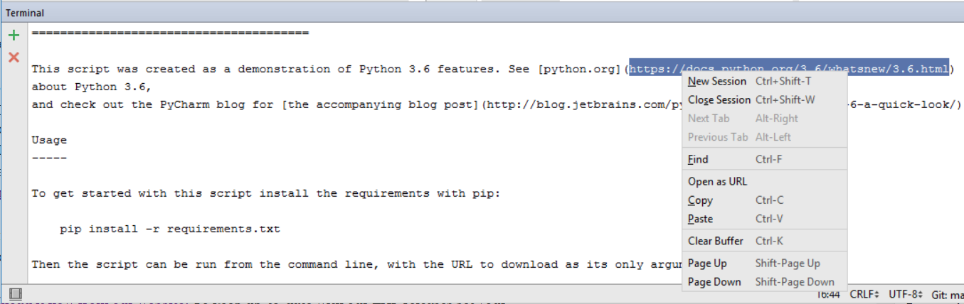 If you’d like to follow a link in the terminal, double-click the link, right-click and select ‘Open as URL’