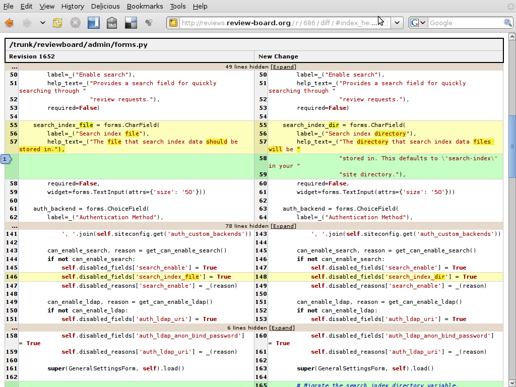 - Viewing an interdiff containing a draft diff and then updating that draft diff no longer shows the old interdiff.
