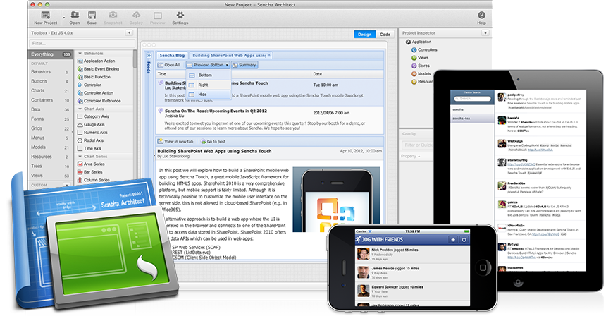 支持通过Sencha Touch 2来构建移动Web应用以及通过Ext JS 4来构建桌面Web应用。