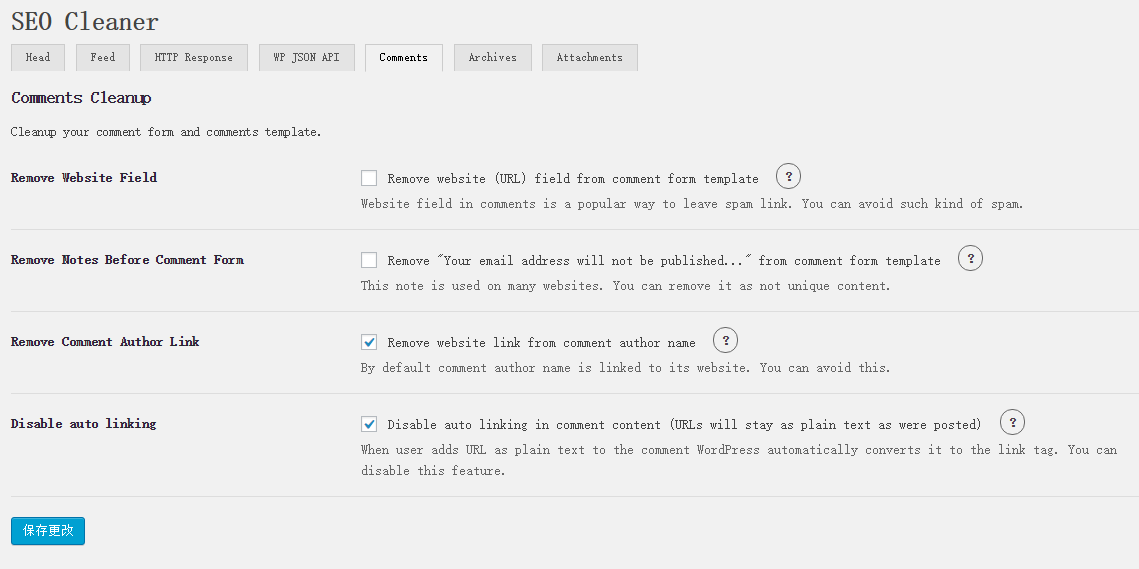 第一个,第二个无需勾选,删除用户评论网址会影响主题布局,不好看的。直接勾选第三个,禁用评论者头像网址功能,第四个,评论内容中将网址作为文本展示。不添加a标签。