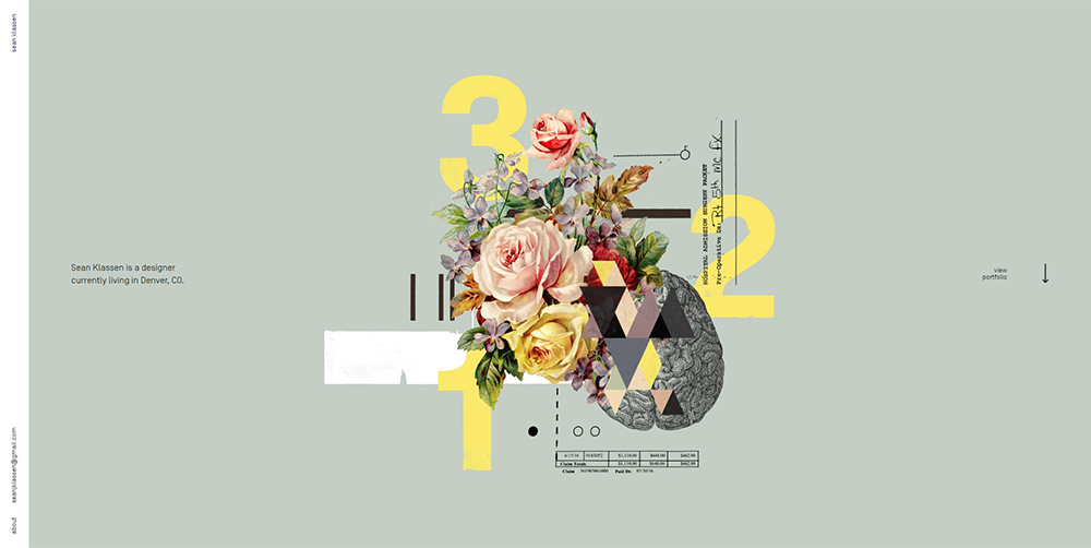 这个页面设计中,字母与静物交相融合的区域位于正中,成为虚焦点,而利用色彩的对比,那副黄色眼镜又从虚焦点的区域突出出来成为实焦点