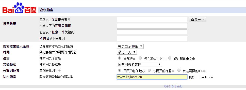 最近有企业客户问到这样的问题,如何查看百度当天的网站收录情况?其实针对这个问题,比较有经验的老手一般都知 道,所以老手直接绕过本篇文章即可。 第一步:猛击百度高级搜索(http://www.baidu.com/gaoji/advanced.html) 如上图,只要选择时间和站内搜索即可!最后点击百度一下即可 。问题解决。其实这些小细节,多注意都可以知道的。 2015年7月28日SEO优化教程 微软7月29日发布Windows 10正式版Adobe Brackets 1.4 发布 网页开发工具 相关文章无人自助棋牌室真能赚钱吗2023年12月21日共享茶室加盟为什么不能做割韭菜模式2023年2月26日为什么你抄别人网站收录索引反而上不去?问题在哪里?2021年4月25日2021年应该如何做seo?2021年4月20日怎么优化自己的网站?2018年3月19日博客外链是否还有价值?2017年4月13日