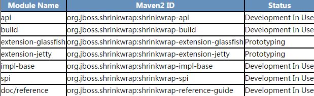 Shrinkwrap 是归档操作的 Java API。Shrinkwrap 提供一个简单的 API 来接收类似 Java 的 JARs,WARs 的归档。ShrinkWrap 项目提供一个简单的 API 来程序化的接收代码归档,允许导出 ZIP 或者其他文件格式,使得更快的原型 “虚拟化” 的从资源中归档,比如类路径,文件系统或者远程 URLs。