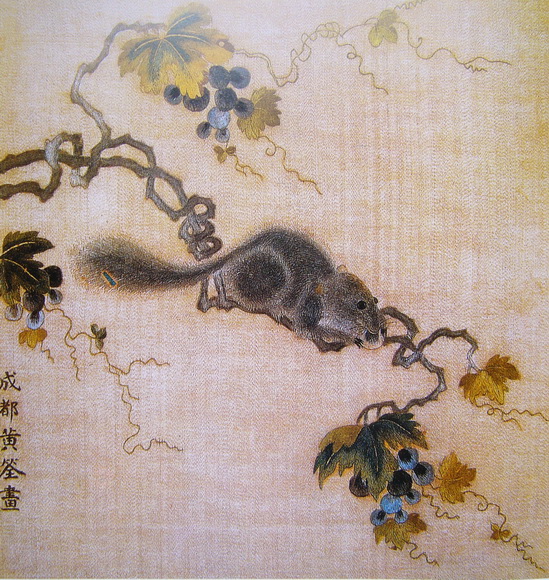 图1-4-5-24 宋刺绣黄荃画葡萄松树图,藏台北故宫博物院