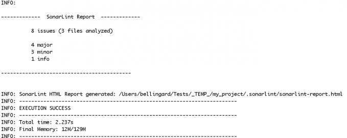 这份报告是通过一个名为 sonarlint 的命令来生成的,下面是执行该工具的截图: