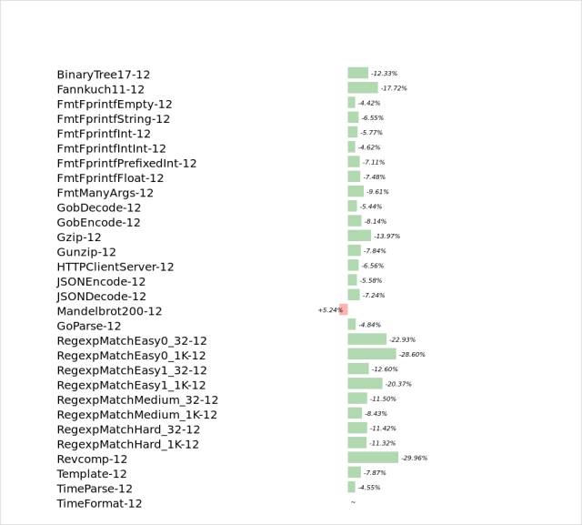 近日,Keith Randall给出了与go1.6相比较的一组基准测试数据: