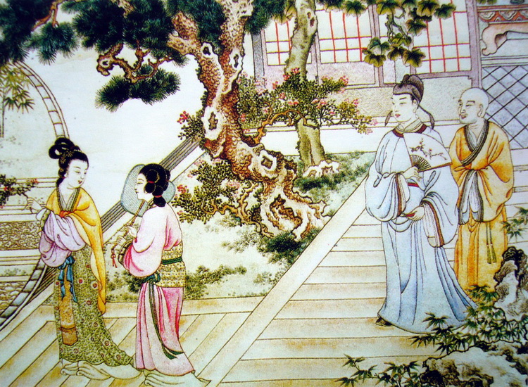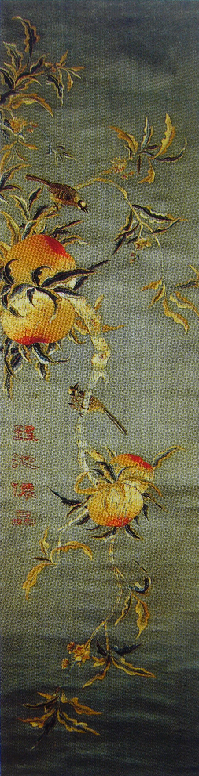 凌抒,字锦怀,光绪年间(1875-1908),吴江人,代表作《窅娘舞莲图》(图1-4-5-3,南京博物院藏),绣稿系吴友如百美图谱,绣品以线描为主,设色素雅。窅娘绣得面目清丽,舞态优美,长题文字也绣得细致入微,可见其技艺工巧;