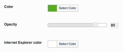 在旧的IE浏览器的半透明背景,请注意,Explorer 8和旧的不支持半透明背景/颜色。因此,你会被建议选择单个颜色旧IE浏览器每次你改变颜色的不透明度在每一个主题选择界面时(图1):