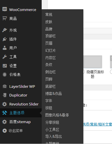 主题选项:就是设置整个主题的,专业术语属于全局设置