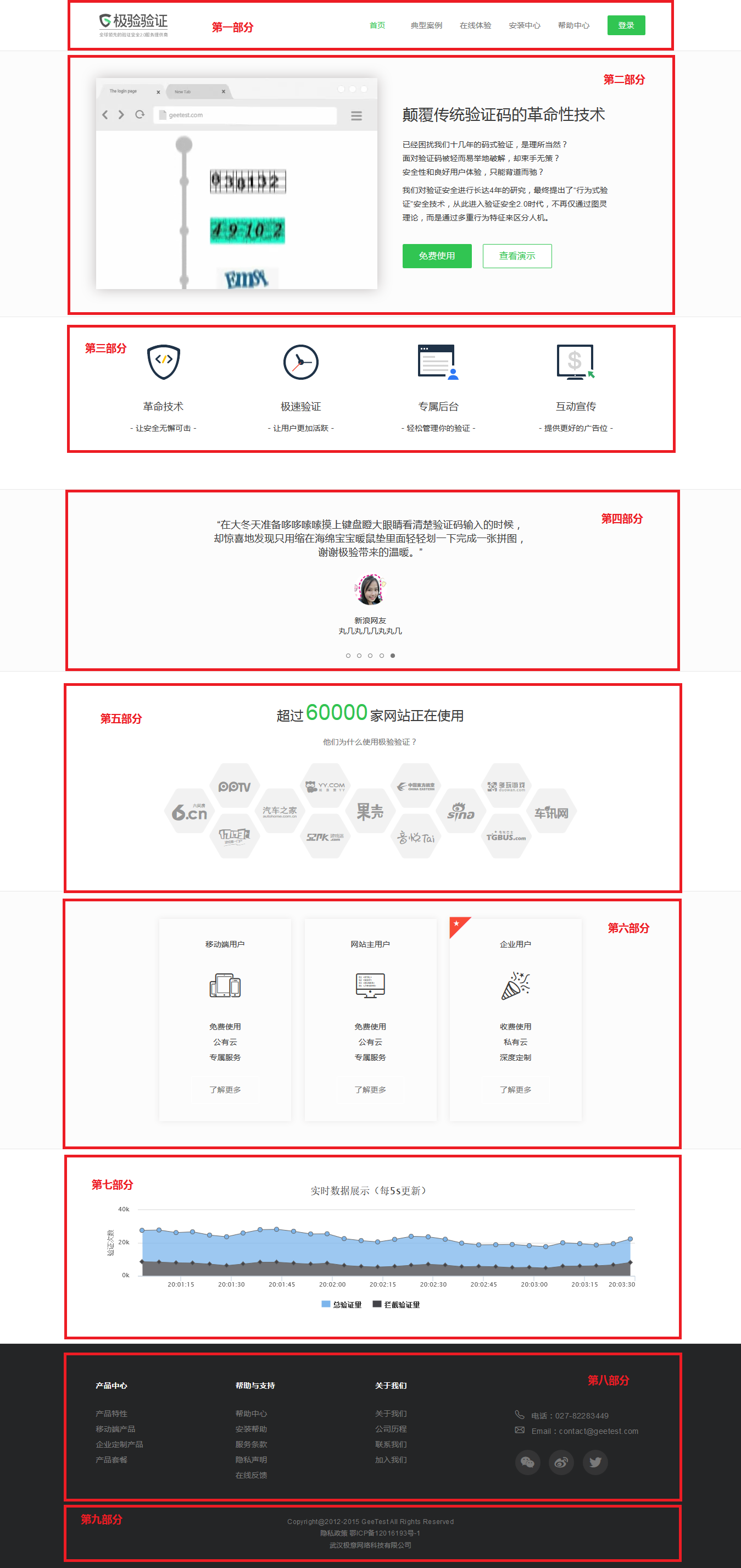 工作开始,目标站:http://www.geetest.com/ 整体结构布局如下,请仔细看划分出来的红色部分!