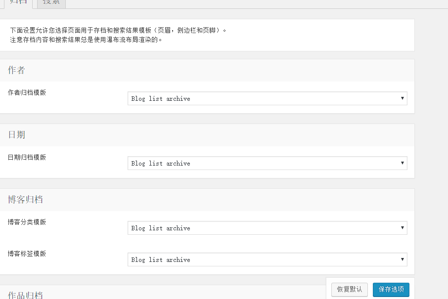 这里作者已经给我们留出来了分类的排版风格自有选择。我们只要选择我们刚刚新建的承载页面即可。