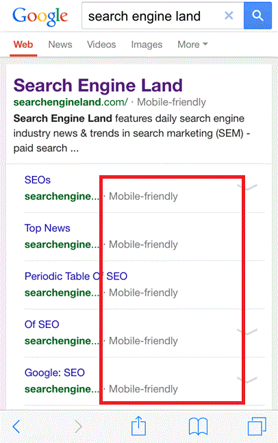 某度,谷歌更是在搜索结果中直接标记网页在移动端是否友好,请看如下图: