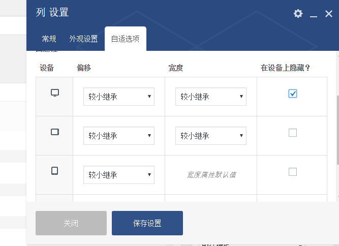 我们点开具体的行,选择在某种设备是否显示。如下图