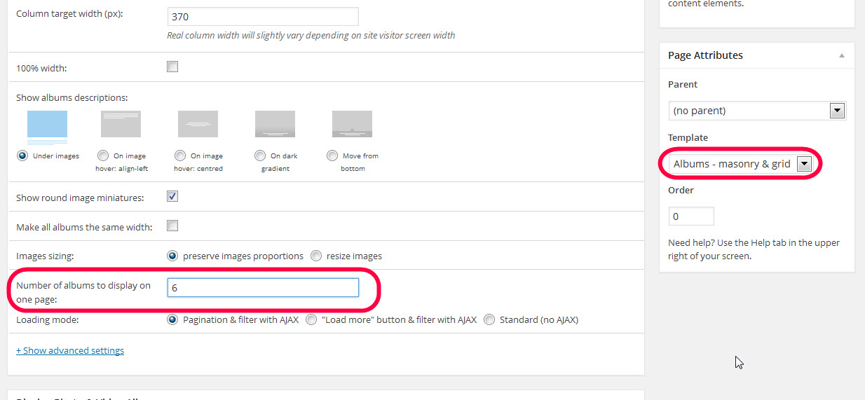 4)降低每页项目(portfolios, albums, catalogs, photos)每个页面显示的数量: