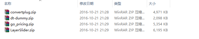 go_pricing(价格表插件)、LayerSlider(2D/3D幻灯片插件)、dt-dummy(导入演示数据插件)、convertplug(搞弹窗的插