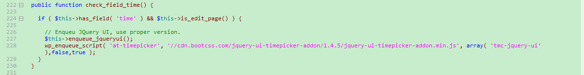 三:路径 \dt-the7\inc\extensions\Tax-meta-class\Tax-meta-class.php 228行 (其实就是加载jQuery日期和时间插件)