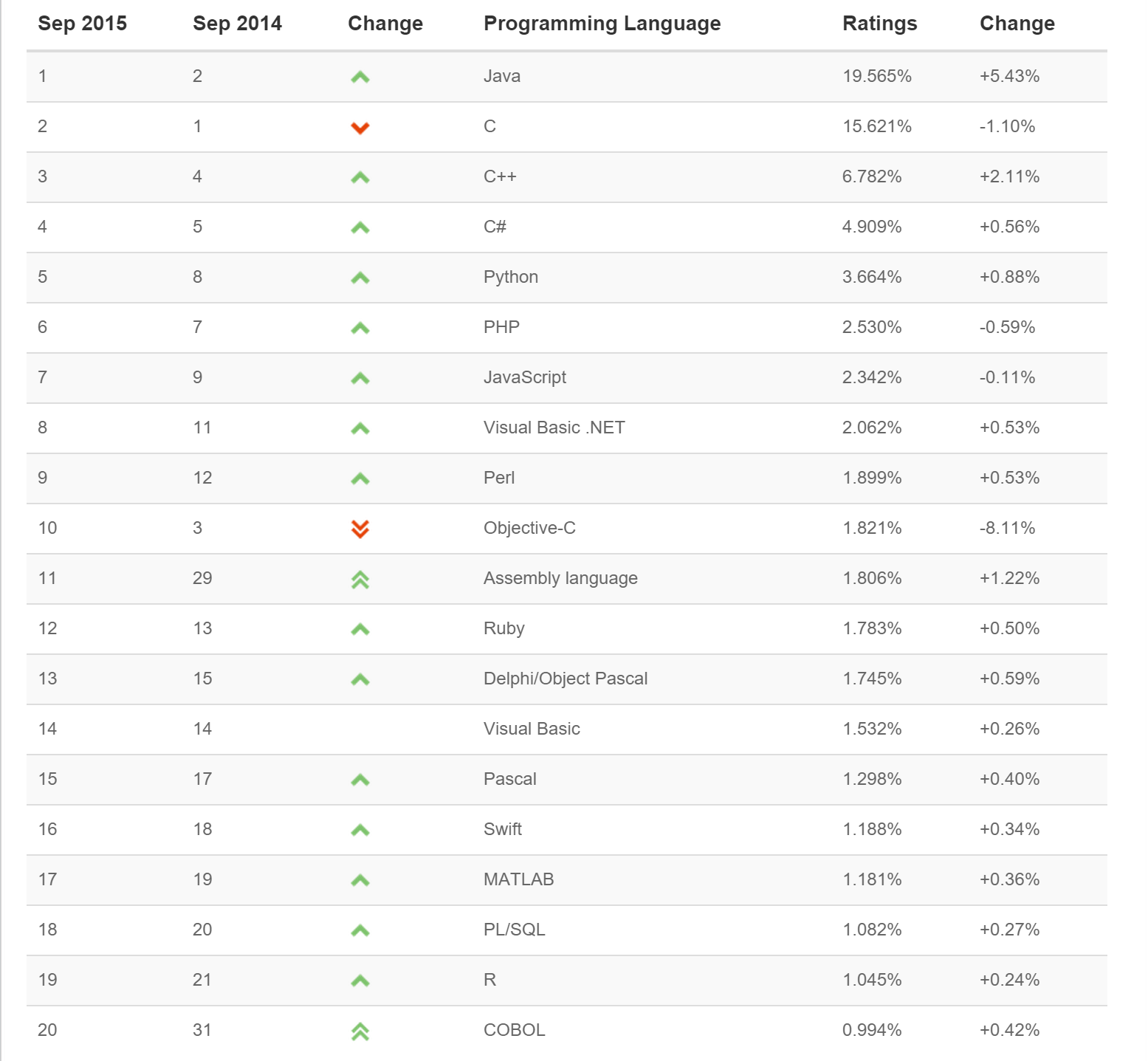 - The major change this month is the adaption of the algorithms to calculate the TIOBE index. See the main story for more details.