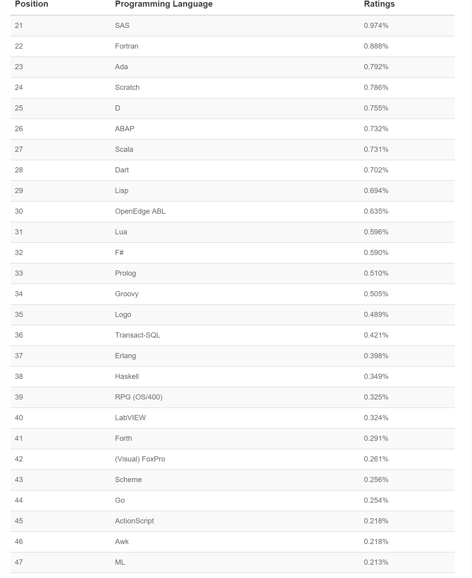 以下是 21-50 编程语言排名:
