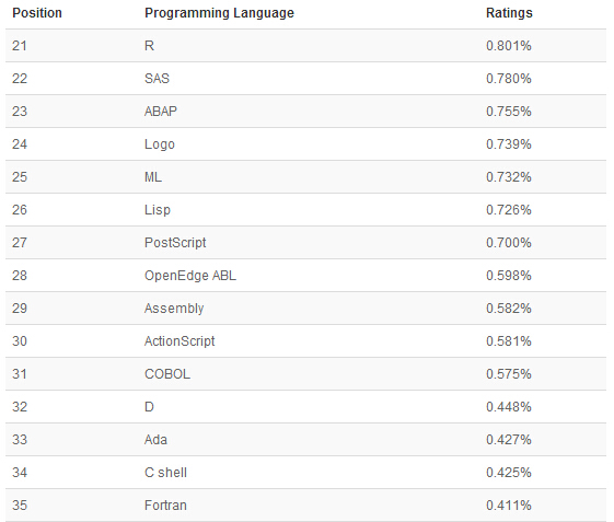 以下是21-50编程语言排名: