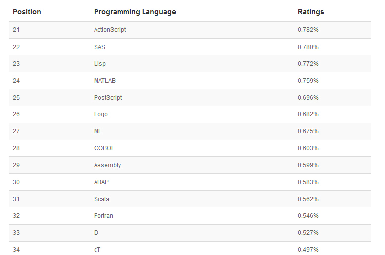 以下是 21-50 编程语言排名: