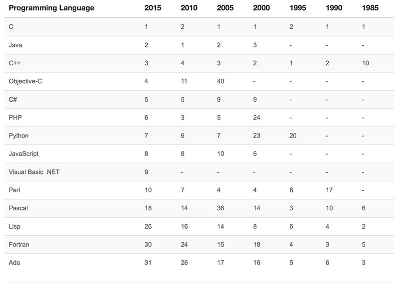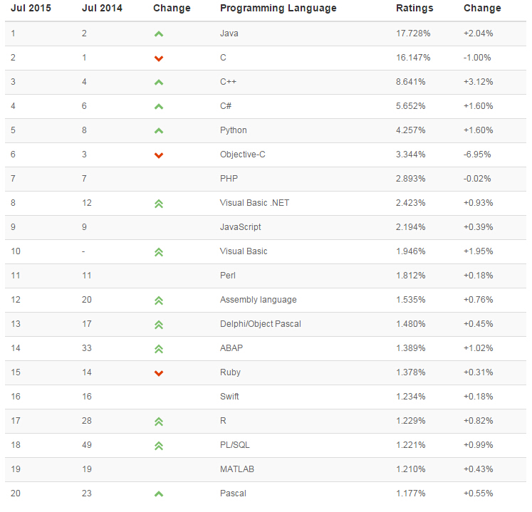 2015年7月TIOBE编程语言排行榜:C++ 的复兴