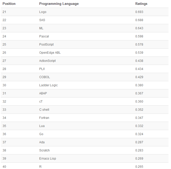 另外一个非常有趣的变化是,TIOBE在收到N多邮件的建议后,将Visual Basic 同古老的 Basic和微软的VB.NET 拆分开来。现在主要统计的是经典的Visual Basic 6版本。当然 Visual Basic 依然可以排在11位。