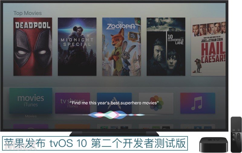 苹果今天发布了 tvOS 10 第二个开发者测试版,tvOS 是专门为第四代 Apple TV 设计的操作系统。tvOS beta 2 发布距离首个测试版发布相隔三周的时间。苹果在今年 WWDC 上发布了 tvOS 10、iOS 10、macOS Sierra 10.12 以及 watchOS 3 操作系统。