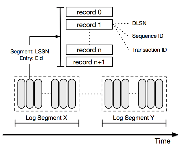 每条日志记录都是一个字节序列。日志记录会按照序列写入到日志流中,并且会分配一个名为DLSN(分布式序列号,DistributedLog Sequence Number)的唯一序列号。除了DLSN以外,应用程序还可以在构建日志记录的时候设置自己的序列号,应用程序所定义的序列号称为TransactionID(txid)。不管是DLSN还是TransactionID都能用来定位Reader,使其从特定的日志记录开始读取。