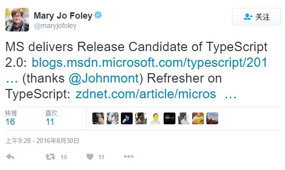 微软当前暂未披露TypeScript 2.0最终版会在何时发布,但预计就在未来几周。
