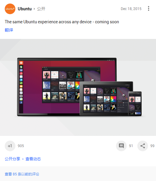 新年新气象,Canonical通过官方Google+账号透露将于明年达成聚合目标,允许用户在PC、平板和手机上获得相同的Ubuntu商用体验,这同时也意味着应用也将跨平台。在Google+博文中写道:“能够在任意设备上获得相同的 Ubuntu体验–即将来临。”