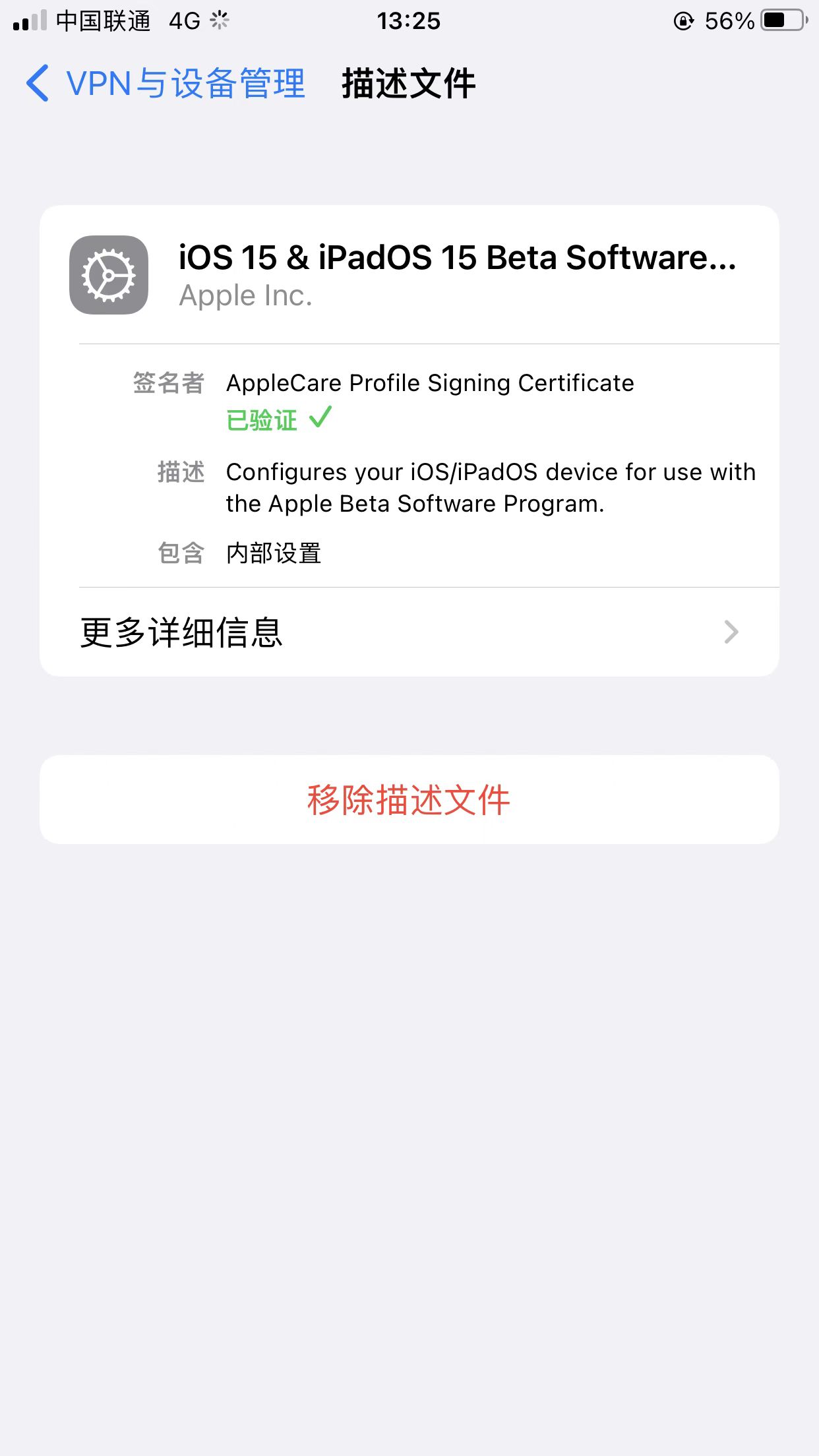 第三步:设备监管之后,然后下载尝鲜派的ios15正式版的描述文件,然后进行OTA升级,即可成功!