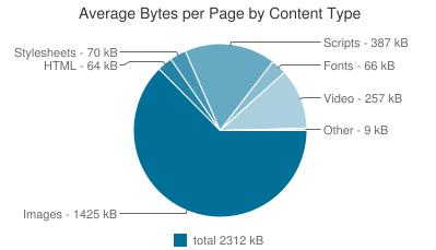 JavaScript库,大英雄图像和背景图像,视频播放器和第三方服务都会杀死UX。当我写这篇文章时,互联网上的平均页面大小是2,312KB或2.3MB,大部分的重量来自图像,脚本和视频播放器。