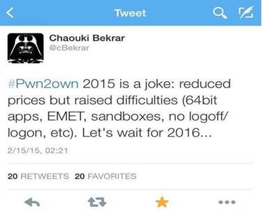 法国黑客团队VUPEN无非是不想沦为2015年Pwn2Own比赛中那个打酱油的人,只能吐槽:Pwn2Own 2015 is a joke。