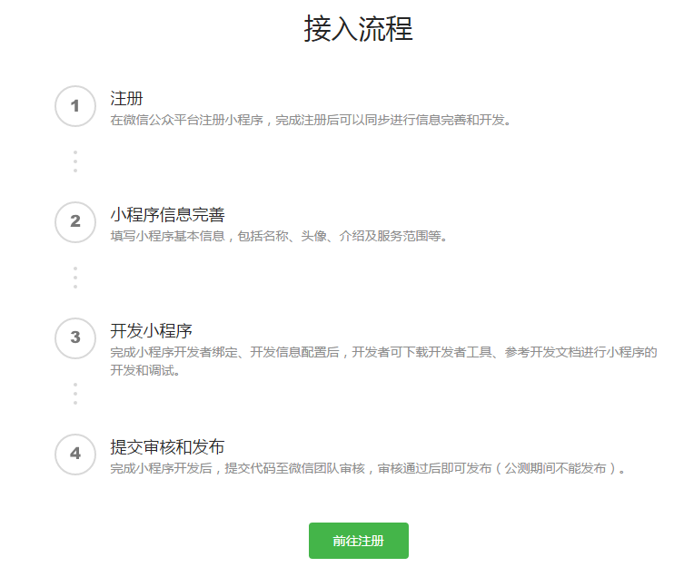 根据微信团队的介绍,开放注册范围为企业、政府、媒体及其他组织,注册方式为,登陆微信公众平台注册小程序,完成注册后可同步进行信息完善和开发。填写小程序的基本信息包括名称、头像、介绍及服务范围等。